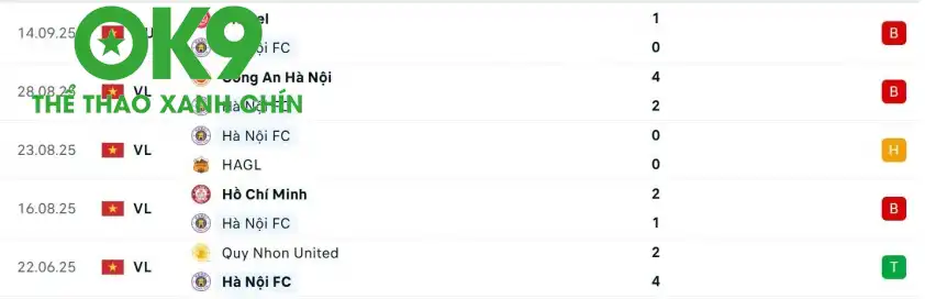 • Hà Nội: Chỉ có 1 chiến thắng, 3 trận thua và 1 trận hòa trong 5 trận gần nhất. Rõ ràng là phong độ đang báo động!