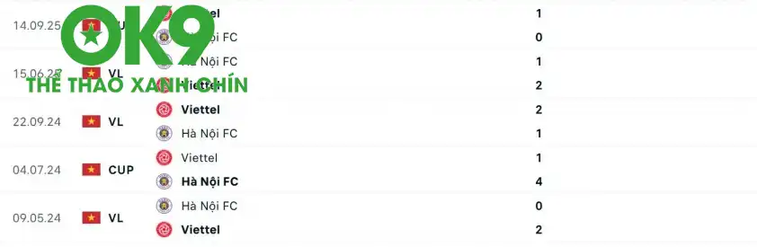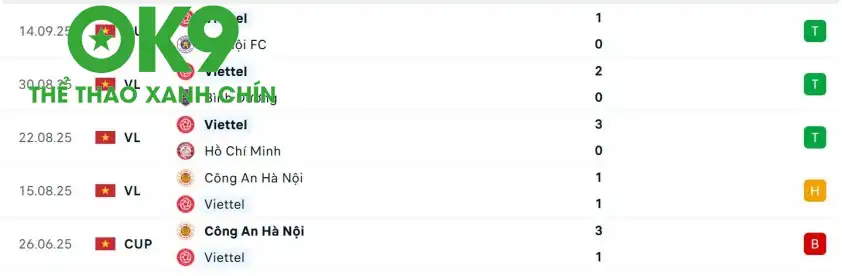 • Lịch sử đối đầu: Viettel thắng tới 4 và chỉ thua 1 trong 5 lần chạm trán gần nhất với Hà Nội. Liệu lịch sử có lặp lại?